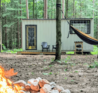 Set 400 feet from other bunkies and far from any main road, this hideaway feels truly private. A fire pit becomes the evening gathering spot where starry skies and crackling flames shape the night.