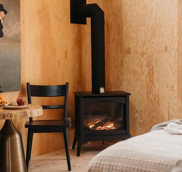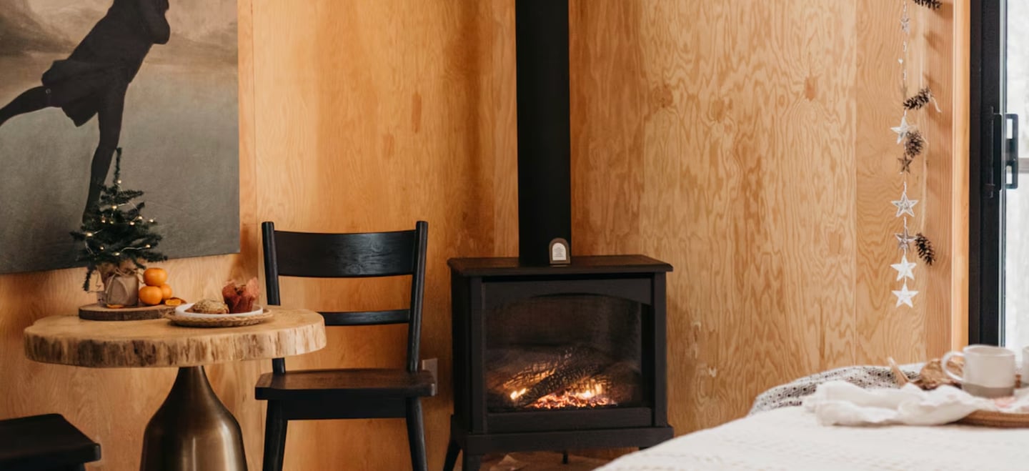 One of the highlights of this stay is the outdoor wellness experience. Guests can relax in a private eucalyptus sauna, cool off in the outdoor shower during warmer months, and spend the evening stargazing in the quiet forest setting.