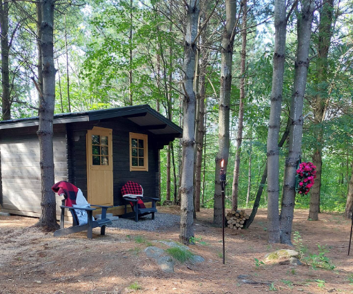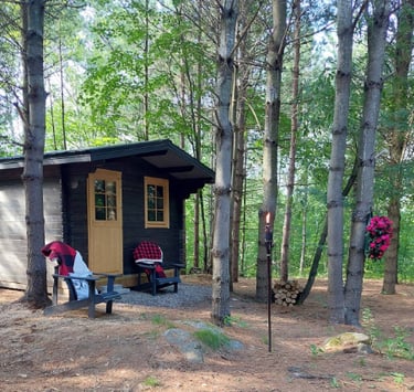 Far away from the noise of the city, Bunkie in the Pines is nestled in the forest of Oro‑Medonte, Ontario. As you pull into the driveway and spot the little cabin emerging through the trees, something shifts — you become aware of the rustle of the pines, the distant call of birds, the stillness. It’s not just a stay; it’s a pause.