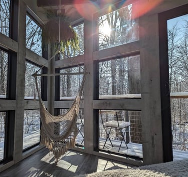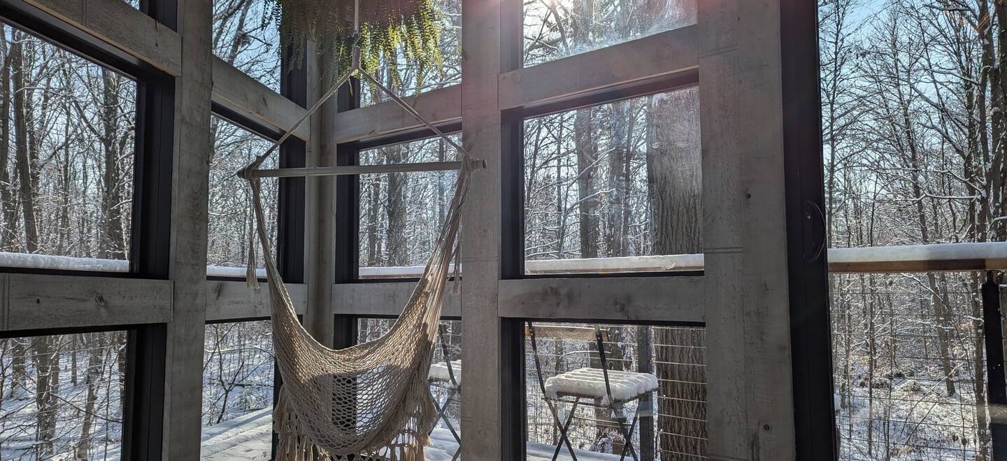 Tucked away in a calm stretch of forest near Saint Anns, Ontario, Cabin Diamond offers a retreat built for quiet, reflection, and a deep connection with the trees. With floor-to-ceiling windows on the main level and a lofted queen-size bed up among the treetops, the place isn’t just a cabin—it’s an experience of being in the forest.