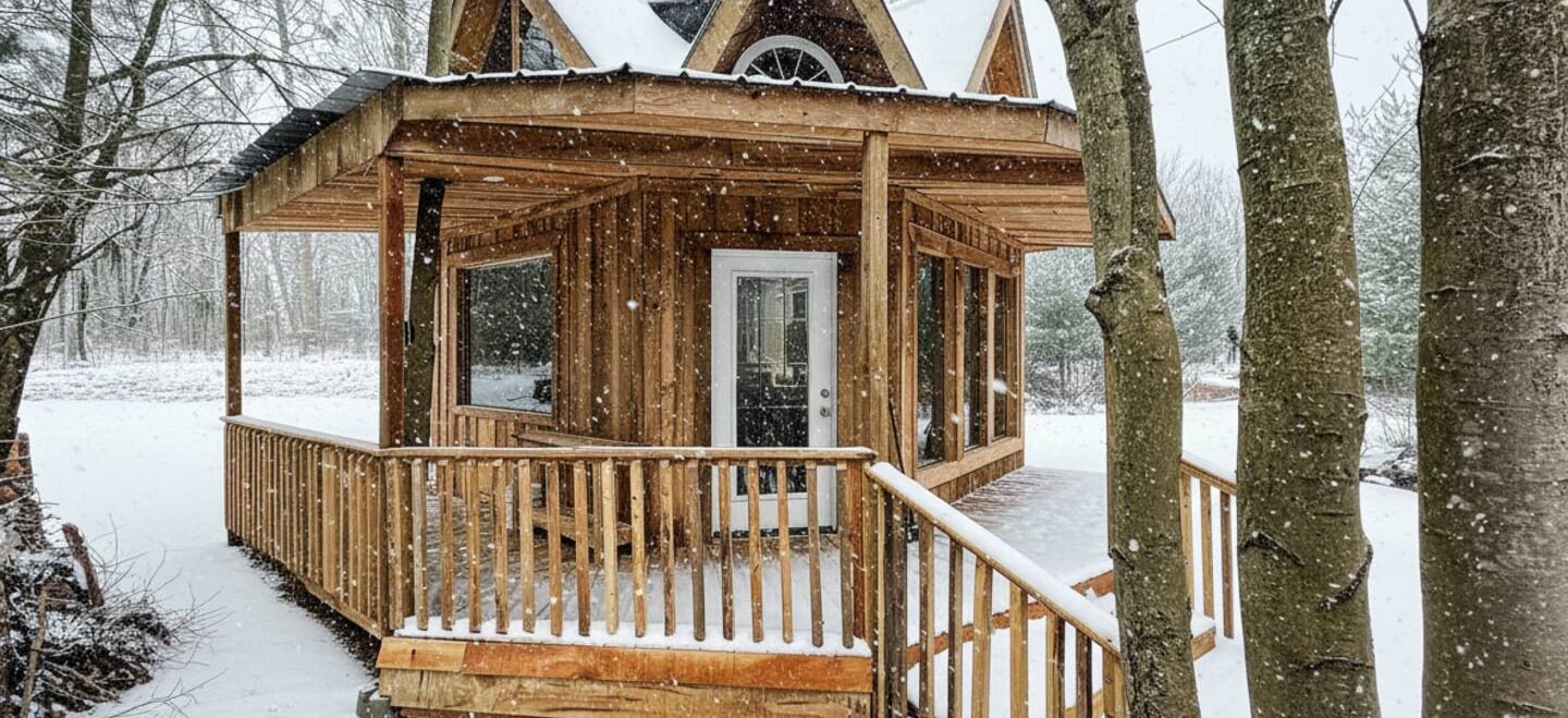 Inside, the bunkie is compact, warm, and intentional. Designed to sleep up to five guests, the layout balances comfort with simplicity: