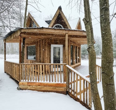 Set deep within 40 private acres of forest near Simcoe, Ontario, this off-grid bunkie offers something increasingly rare: real quiet. From the moment you arrive, the pace shifts. The crunch of gravel fades, the trees close in, and the noise of everyday life gives way to birdsong, wind through branches, and the soft stillness of the land.